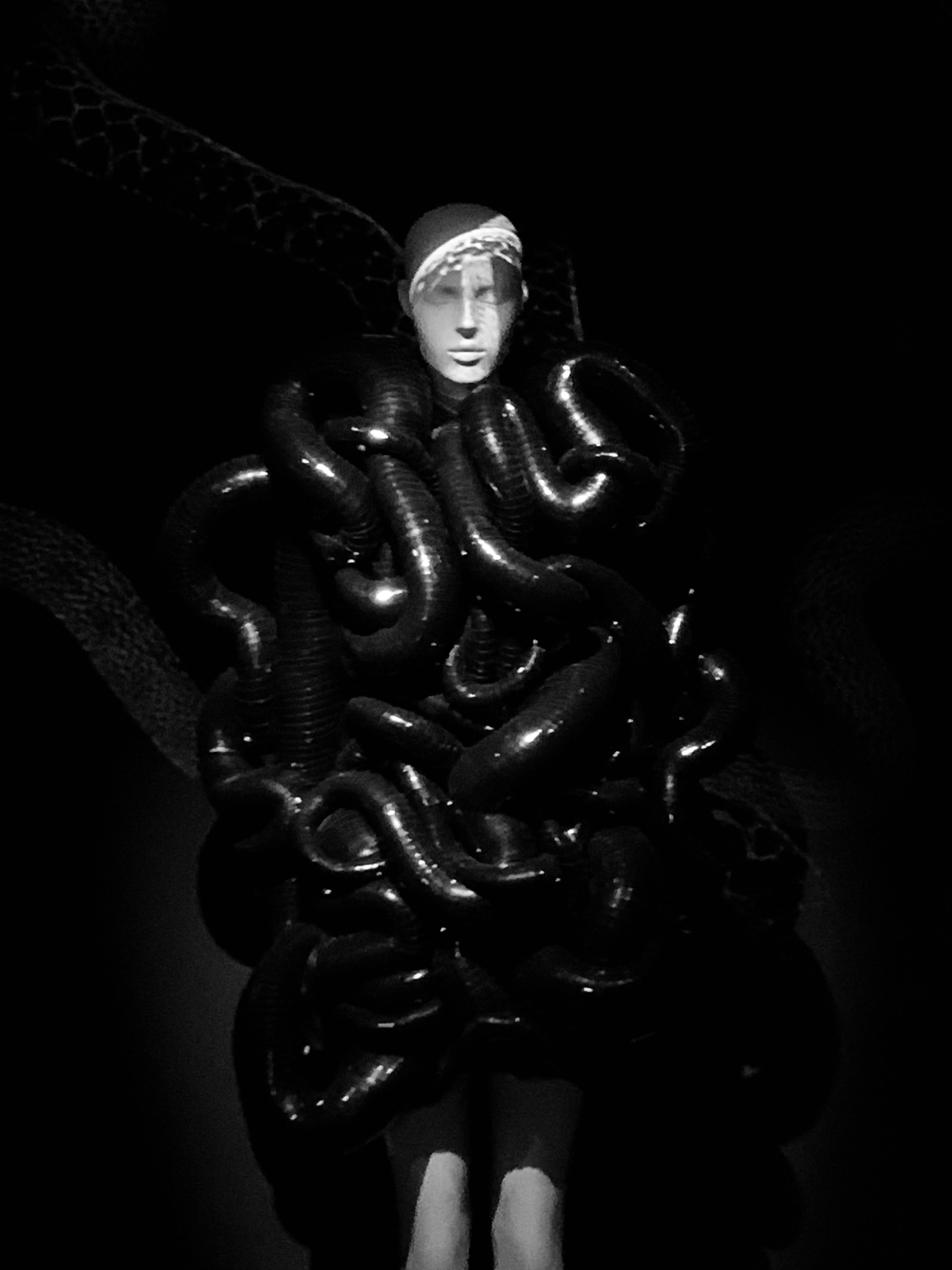 Vous essayez malgré tout de comprendre ce qu’essaie de dire la Créature, vous vous concentrez fort vous essayez de faire abstraction de l’immense ennui qui s’empare de vous au récit par le menu ET en boucle de sa journée, entrecoupé de silences hagards. Mais en vain. Des interrogations tournent et se retournent dans votre tête : la Créature d’Outre-Tombe a-t-elle conscience d’elle en-tant-que Créature d’Outre-Tombe ? Se verra-t-elle, une fois le jour revenu, telle que vous l’avez vue, mâchoire décrochée, sans-dessus-dessous ? Sans doute pas, sinon comment tout ceci serait-il possible ! Et qu’a-t-elle donc vécu qui ait ainsi fini par faire mourir une partie d’elle-même?