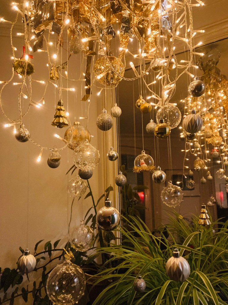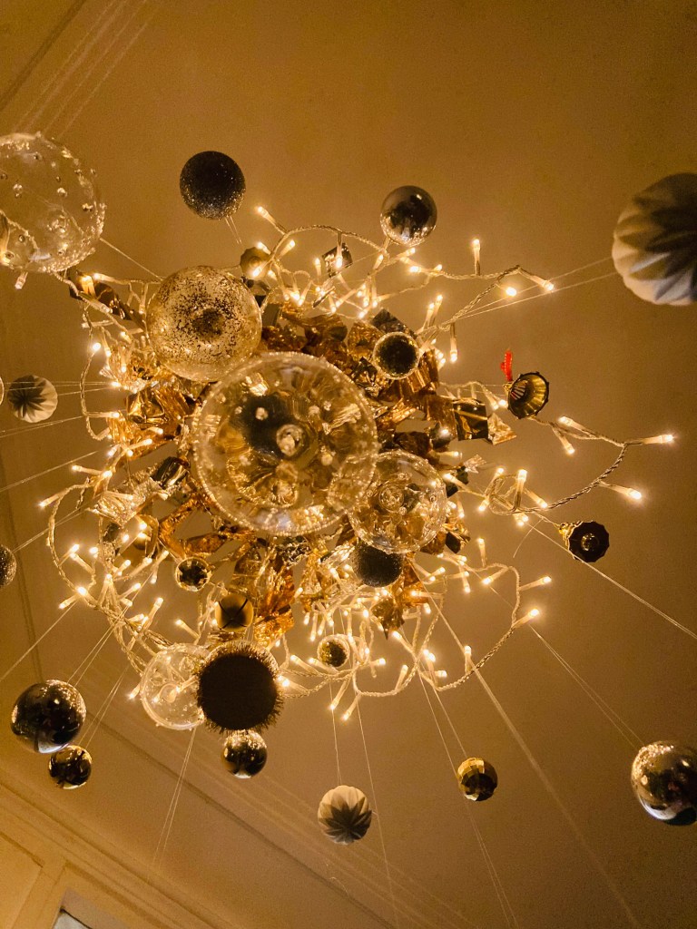 Quand j’en ai montré la photo à la voisine qui m’avait prêté sa perceuse (rapport au crochet pour mon sapin aérien), elle m’a dit : « ben, c’est une suspension lumineuse quoi ». Mais non. C’est un air-sapin, je suis super fière de lui, et de moi qui ai réussi sans souffrance à me débarrasser, avec l’aide de ma meilleure pote, d’une vieille habitude qui ne me convenait plus.
